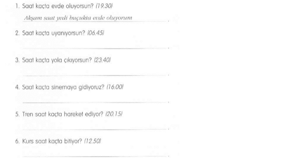 Bài 16: Dùng giờ gợi ý để viết câu trả lời cho câu hỏi