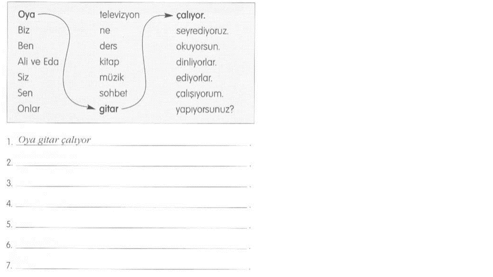 Bài 5: Ghép từ trong câu để thành câu đúng. Chia thì hiện tại tiếp diễn cho động từ