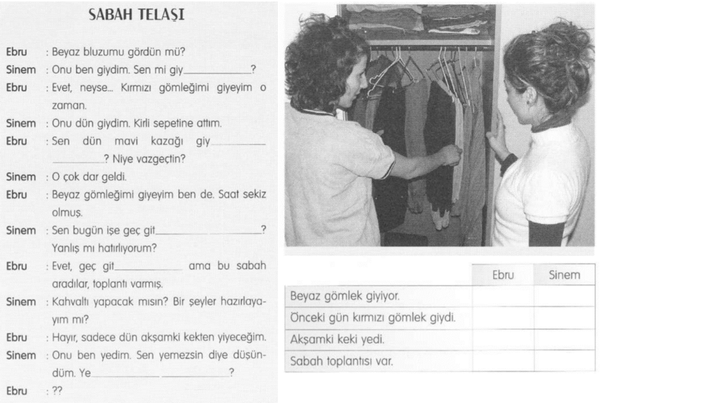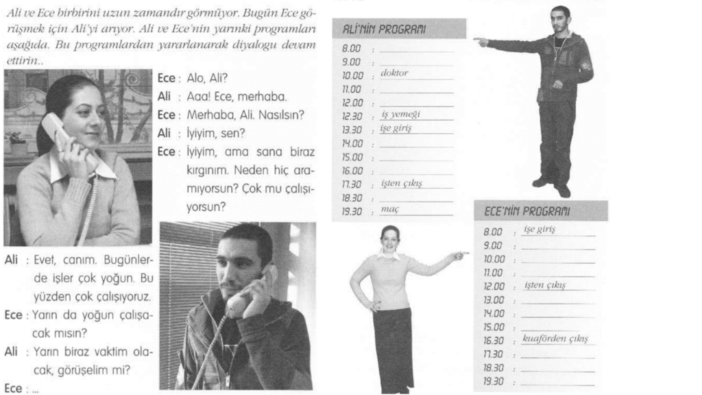 Bài 5: Điền vào thời gian biểu của 2 nhân vật rồi tiếp tục viết thêm cho đoạn hội thoại