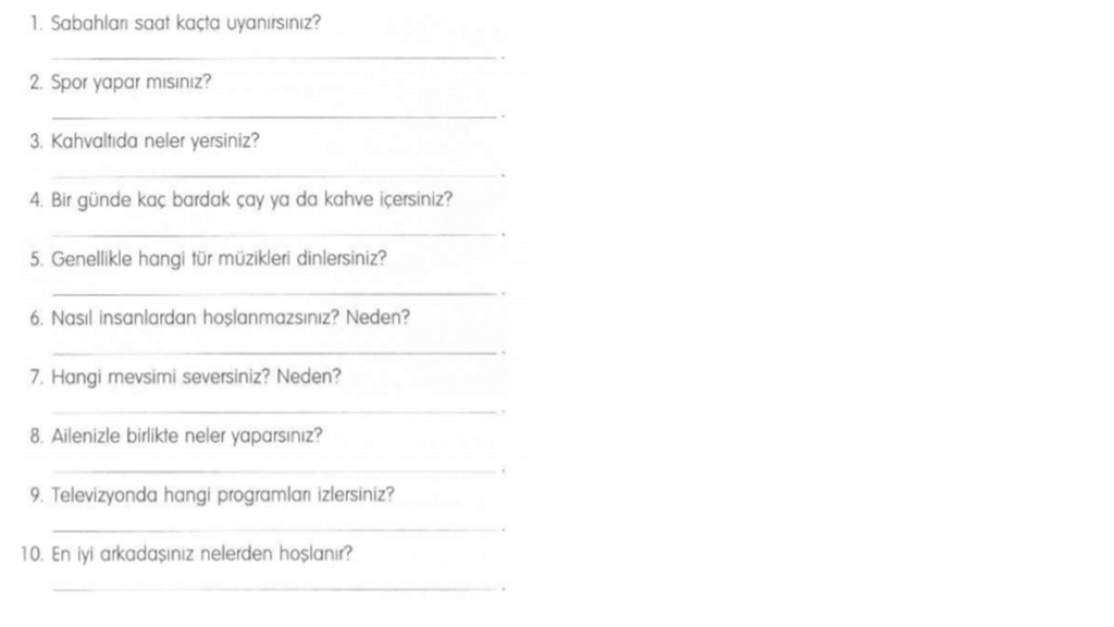 Bài 1: Điền câu trả lời thích hợp cho câu hỏi