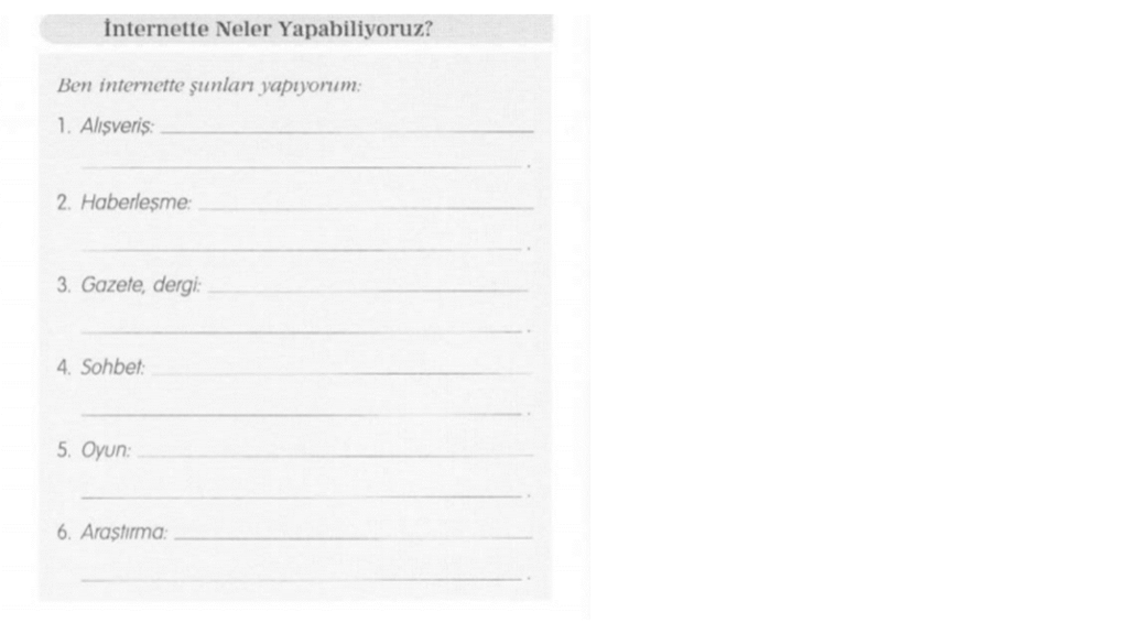 Bài 6: Viết câu trả lời cho từng hành động bạn có thể làm trên internet nhé