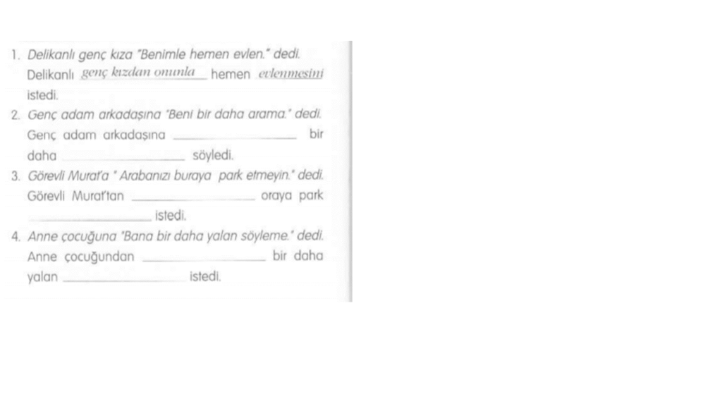 Bài 8: Biến câu đề nghị thành câu tường thuật gián tiếp