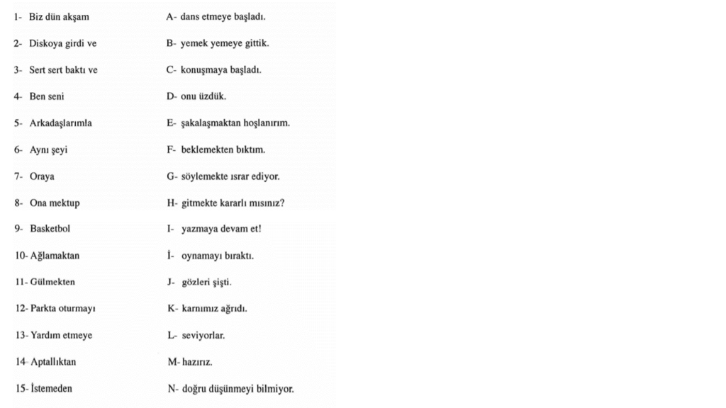 Bài 7: Điền số thứ tự vào câu thích hợp