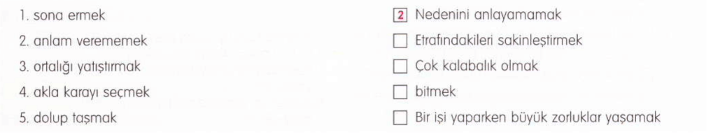 Trước hết, chúng ta làm bài tập về một số cụm từ mới nhé. Hãy đánh số đúng vào bên trái để thể hiện nghĩa của các cụm từ bên phải: