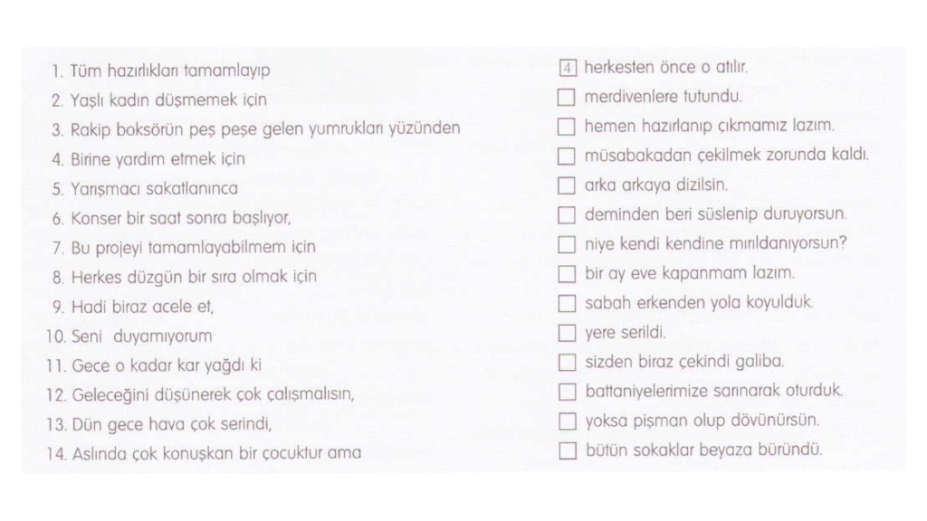 Bài 5: Đánh số đúng vào các cột bên phải sao cho phù hợp với cột bên trái để tạo thành câu
