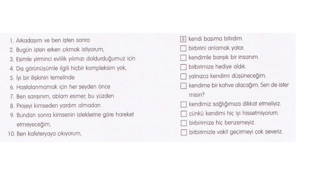 Bài 10: Đánh số đúng vào các cột bên phải sao cho phù hợp với cột bên trái để tạo thành câu