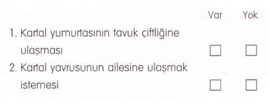 Küçük kartal, o günden sonra hemen her gün gökyüzüne bakıyor ve uçan kartallan arıyormuş gözleriyle… Bir kartal görünce çiftlikteki öteki tavukları unutuyor, gökteki kartalları büyük bir hayranlıkla izliyormuş. Kartal yavrusu, ne zaman ‘Keşke ben de bir kartal olsam, keşke ben de uçabilsem, dünyayı gökyüzünden görebilsem‘ dese, çevresindeki tavuklar aynı şeyleri söylüyormuş: “Boş hayaller kurma. Vazgeç düşlerinden.. Sen tavuksun ve hep tavuk olarak kalacaksın…”