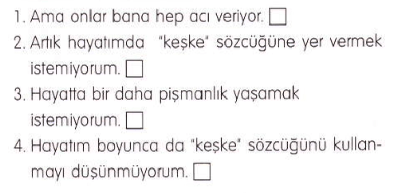 Benim ise birçok insanın aksine ‘keşke’ sözcüğü girmedi hayatıma. Çocukluğumdan beri hayattaki seçimlerinden mutlu olmaya çalıştım. Her zaman kararlarımı kendim aldım ve onların sonuçlarına razı oldum. Ailem, arkadaşlarım beni bazı konularda uyarmak istediler. Çoğu zaman haklıydılar aslında ama ben onların uyarılarına fazla kulak asmadım.
