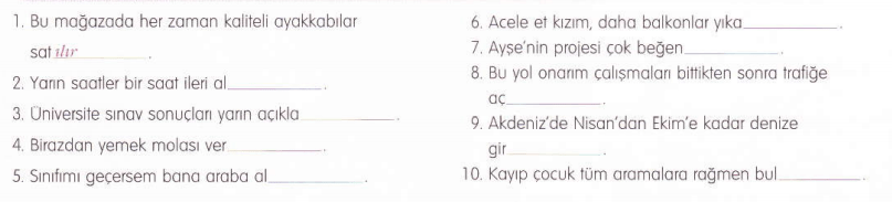 Ví dụ các động từ sau: düşmek ngã, ölmek chết, yaşlanmak già đi, batmak chìm, erimek tan chảy,…chúng ta cũng không có dạng bị động cho những động từ này.