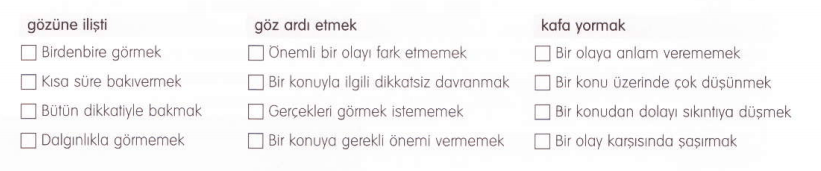 - gözüne ilişmek (động từ): nhìn thoáng qua