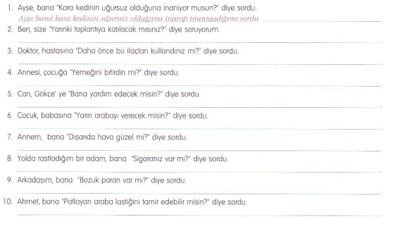 Gốc động từ (bỏ mak/mek) + ma/me + diğini/ dığını/ duğunu/ düğünü